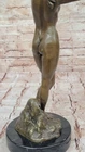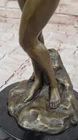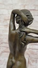 Art Deco Woman Nude Bronze Sculpture Statue by Mavchi Museum Quality Figure Art Art Deco Woman Nude Bronze Sculpture Statue by Mavchi Museum Quality Figure Art Condition : This sculpture is in perfect condition. Bronze Dimensions with Marble Base: Height 15" X Width 6" Marble Dimensions: Diameter 6" Height without base:14" Weight:9 LBS Inventory:54YRD5105245 Elevate your collection with this signed original bronze sculpture by Mavchi, featuring a captivating nude nymph in a graceful, abstract Art Deco style. Evocative and elegant, this sculpture captures the feminine form in a pose that radiates serenity, sensuality, and timeless beauty. Handmade using the traditional lost wax method, this piece showcases museum-quality craftsmanship, with a rich brown patina that enhances the flowing lines and artistic detail of the sculpture. The nymph stands poised on a black round marble base, offering stability and contrast that further elevates the sculpture's sophistication. This stunning work of art is perfect for collectors of fine bronze, Art Deco enthusiasts, or anyone seeking a refined and luxurious décor piece that blends classical form with modern abstraction. Shipping Terms : Most of our items are shipped via USPS (United States Postal Service) mail or UPS. Most orders are shipped within 24-48 hours of purchase. Please be aware that not all items are available for USPS shipping due to size and weight. We do ship to Hawaii, Alaska, Canada, Puerto Rico, APO/AE, and U.S. Virgin Islands, however, an additional charge may be required. Please contact us before making any purchases in these areas. For Non-USA customers, you may be responsible for all duty, tax, brokerage fees that may be due upon delivery (shipping costs cover freight charges only). We also ship internationally. Please refer to the "Shipping and Handling" chart for the rates for each area. Payment : We accept just about any form of payment. PayPal, Master Card, Visa or American Express credit cards. Money orders, cashiers checks, and even personal or business checks. For governmental institutions, we will also accept a purchase order. Please understand that for personal or business checks we have to wait for the check to clear (usually 7 days) before shipping. Condition : New Detailed Hand Crafted Hot Cast Bronze Satisfaction Guaranteed. This is Stock Photo, Slight Color Variation!! Listing and template services provided by inkFrog