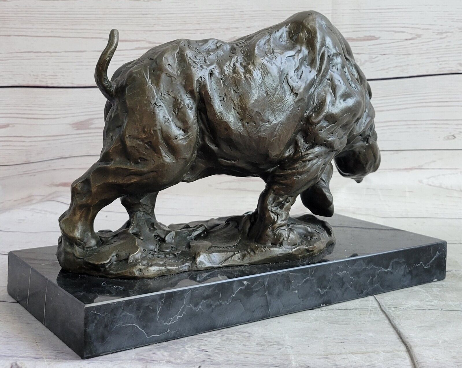 Condition : This sculpture is in perfect condition. Bronze Dimensions with Marble Base: Height 9" X Width 13" Marble Dimensions:12" X 6" Height without base:8" Weight:17 LBS Inventory:85AL3389058 Introducing a captivating bronze sculpture that celebrates the timeless and majestic rhinoceros. With a history spanning millions of years, these remarkable creatures have retained their fascinating and primitive appearance, evoking a sense of awe and wonder. This exquisite sculpture showcases the incredible craftsmanship that brings out the unique features of the rhinoceros. The artist's attention to detail is evident in the depiction of the rhino's thick skin and the intricate ridges that form as it shifts in movement. Every contour and texture has been meticulously crafted to capture the essence of this magnificent creature. The focal point of the sculpture is the rhino's head, which gently nudges the surface of a rock. The positioning allows its iconic horn to touch the ground, symbolizing its connection to the earth and emphasizing its strength and presence. The rhino's powerful stance conveys a sense of confidence and stability. The sculpture is elegantly presented on a black marble base, mirroring the shape of the rock underneath the rhinoceros. This thoughtful design choice adds to the visual appeal and complements the overall composition. The sturdy base ensures stability and enhances the overall aesthetic of the artwork. Crafted using the time-honored "Lost Wax Method," this sculpture is a testament to the artist's dedication to preserving the finest details. Each piece is individually cast and finished, ensuring the highest quality and authenticity. This remarkable sculpture bears the signature of the renowned artist Milo, reflecting his exceptional skill and artistic vision. With his signature, you can be confident in the authenticity and value of this collectible artwork. Display this captivating bronze sculpture in your home, office, or art collection, and let it serve as a reminder of the rhinoceros's enduring presence on our planet and the importance of conservation. This piece by Milo is a true testament to the beauty and magnificence of these ancient creatures. Signed Original Milo White Rhino Bronze Sculpture Marble Base Figurine Home Gift Video will open in a new window Using the eBay App? Paste link into a browser window: [isdntekvideo]