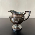 Beautiful art deco silver creamer with a monogrammed "G" that is tarnished, but I will leave to the discretion of the buyer if they want to keep the patina.