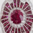 Art Deco Style Round Ruby Lab Created Diamond 14K White Gold FN Engagement Ring