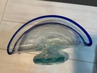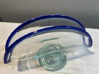 Art Glass Napkin/Letter Holder Blue Bubble Glass , Handmade, no flaws. Measures 5 inches tall, 8 inches long