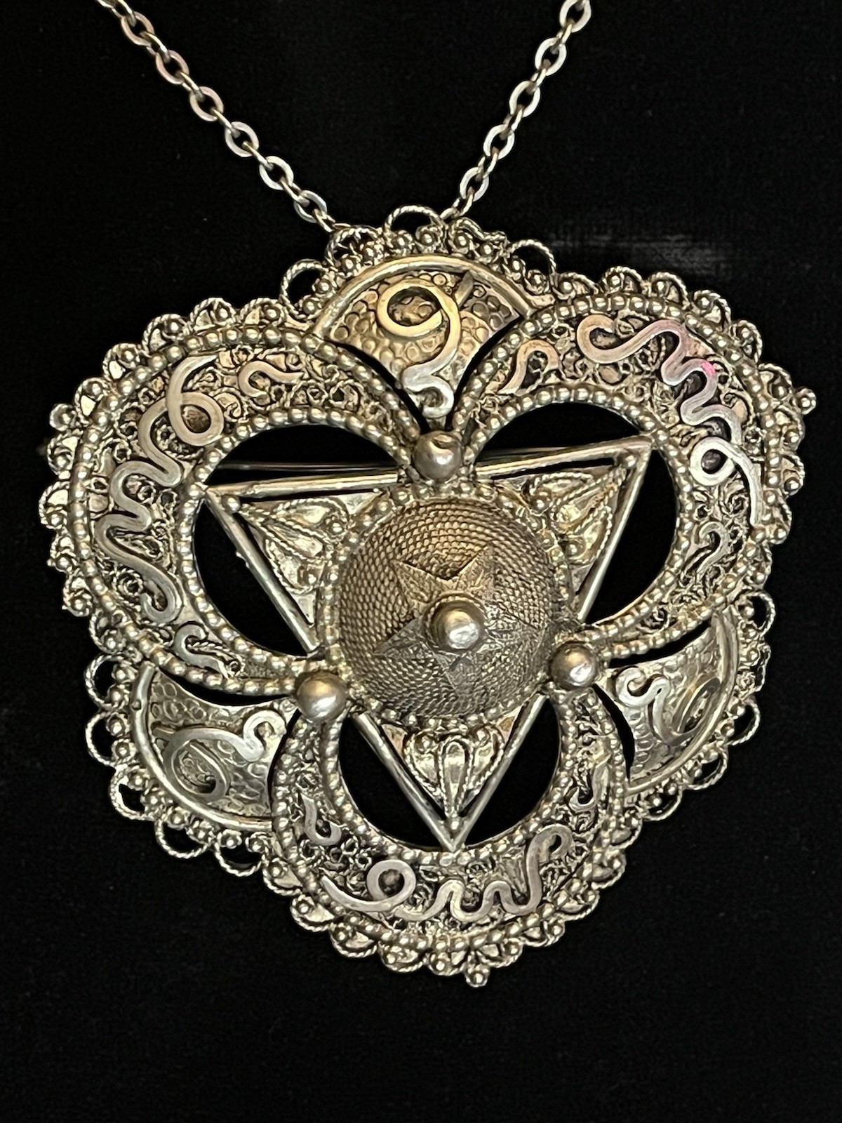 Vintage 2002 Mary Rogers Amulet Heart Brooch 22k, Fine Silver, Copper 17.09 G