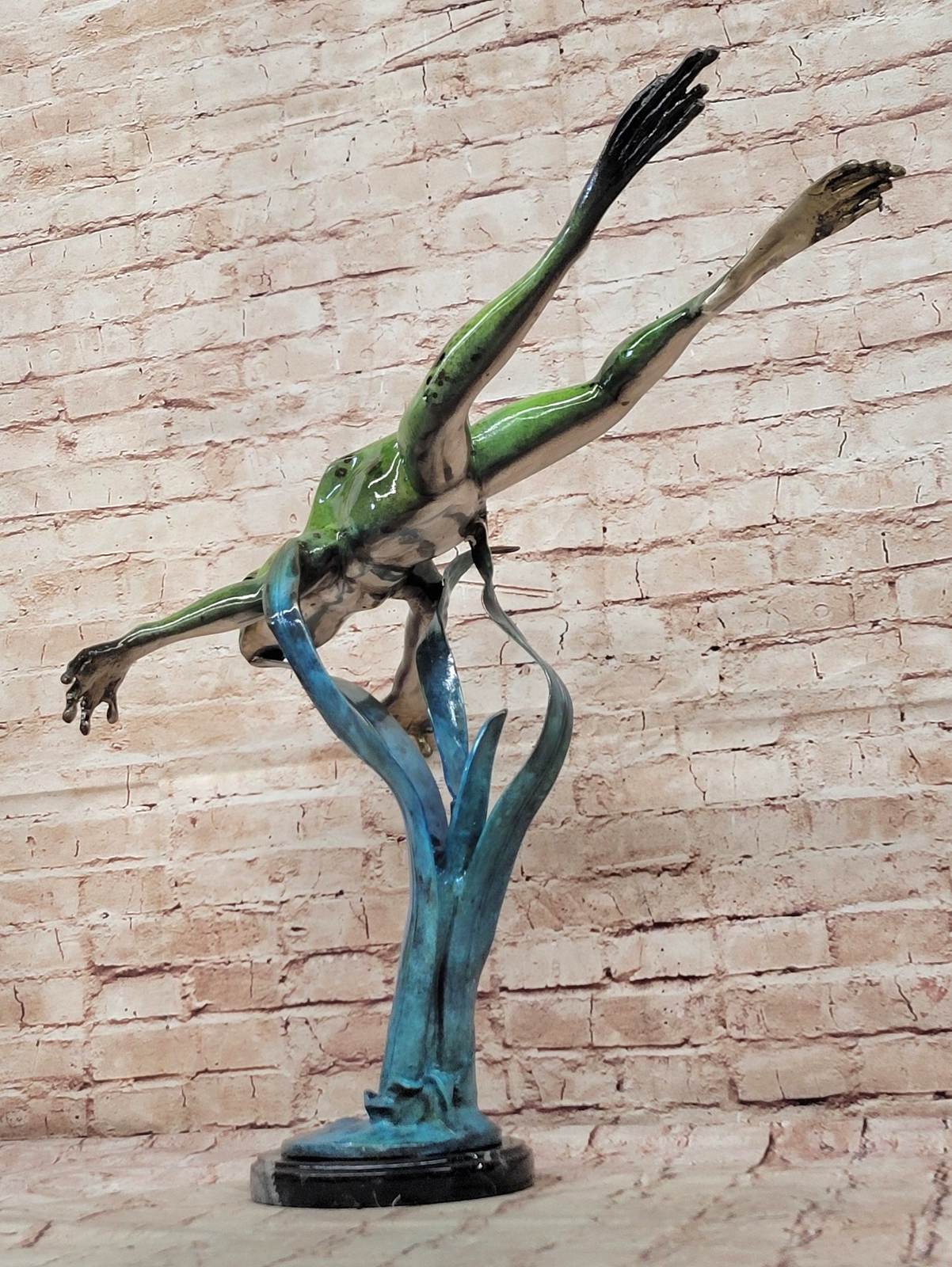 HomeArt Nouveau Style Statue Sculpture Frog Wildlife Art Deco Style Bronze Signed NR