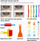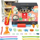Arteza Kids Air Dry Modeling Clay Kit, 4 x 8-oz Packs Sensory Play Sand, 8 Sandy Clay Tools, 15 Decoration Shells, Art and Craft Supplies for Kids, Sand Castle Building, Birthday Gifts
