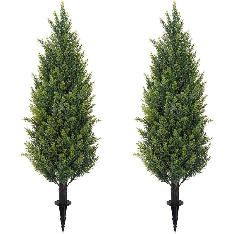 Artificial Cedar Tree Set of 2 Lifelike Indoor Outdoor Decoration UV Resistant