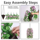 Artificial Orchid Flower Hanging Basket. ANTI-RUST COATING: The plant hanging baskets is made of a black vinyl coated hook and three durable heavy duty black chains. SIMPLE ASSEMBLY: This product require you to spend 5 minutes to assemble the parts to a finished product, Please refer to the pictures listed. Tips: 1. Some of the flowers maybe fall off because of long shipping, but please don't worry, the fallen off flowers can be easily inserted into the vacant place without glue. 2. If the stem was bended a little bit because of transporation, please just fix it by bending the stem. 3. If the flowers were wrinkled because long shipping, please don't worry, you may use a hair dryer to easily recover it. SIMPLE ASSEMBLY: This artificial hanging plant requires you to spend 5 minutes to assemble the parts to a finished product. Please refer to the pictures listed above to assemble. PACKAGING: The beautiful faux hanging flower basket comprises of a hand-woven cone-shaped basket with chains and 4 bags of artificial flowers. Each hanging branch has 19 forks of flowers and leaves. The chain is about 11.4" and the basket with flowers is about 18.1" in height and 12.2" in width. The finished product is about 12.2"x28.5" (width x height). GOOD QUALITY: The hand crafted hanging baskets and high-quality artificial flowers don't require any maintenance after assembly. And the metal parts are sturdy enough for any weather. GREAT DECORATION: The fake hanging flower is a great decoration for your home and garden, indoor and outdoor. It will bloom all season and add a sense of spring to your home.