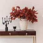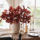 Artificial Fall Oak Tree Leaves Stems 8 PCS, Fall Oak Leaves(orange-red)