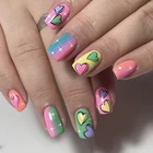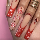 100% Brand New And High Quality Type: Fake nails Shelf life: three years Suitable for skin type: Any skin type Qty: 24pcs/box Colors:As Show How to use: 1. Clean the nail surface with a cleaning cloth. 2. Pick the right nails (nails are slightly smaller and more natural than nails). 3. Stick the adhesive on the nail surface (press hard, no bubbles). 4. Align the round head of the nail with the bottom of the nail, then press (the part with the number facing outward). 5. Modify the edges of nails with a rubbing strip according to personal needs. 6. Remove the adhesive, nails can be reused. How to remove: 1.Use a small wooden stick to gently cut your nails from the edge of the nails. 2.Clean up nails and adhesive residue on nail surfaces. 3.Nails can be reused after removing them. Package includes: 24PCS Fake Nails 1 x Nail Glue