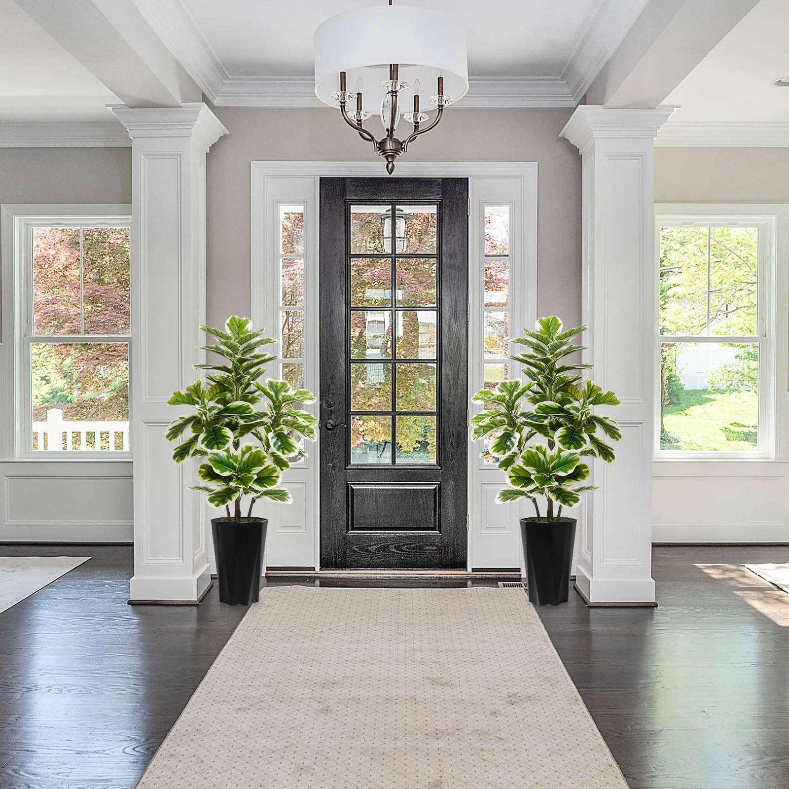Rubber Tree Artificial 5ft Perfectly Proportioned Planter: Designed to complement the fake Lyrata tree, our planter offers the ideal blend of style and functionality. Each set includes everything you need: the tree, planter, and artificial moss, so you can skip the extra purchases and enjoy a hassle-free setup. Highly Realistic Design: Crafted with polyester and plastic, each artificial tree is carefully hand-assembled with wire stems to deliver a lifelike appearance that’s hard to distinguish from the real thing. The rich, natural color variations enhance its authenticity, making our fake plant a striking addition to any space. Year-Round Freshness: Bring the beauty of nature into your home with our fake tree, which maintains its vibrant green appearance throughout the year. Unlike real plants, it won’t wither in the winter or suffer from the summer heat—always lush, always beautiful. Adjustable Branches & Leaves: Customize the shape and fullness of your floor plant by simply bending, separating, and fluffing the branches and leaves. Built with durable, safe materials that are perfect for family homes and pet-friendly environments. Zero Maintenance: Enjoy the beauty of a thriving tree without the upkeep. Our faux trees indoor require no watering or trimming—just the natural, relaxing beauty of greenery without the effort.