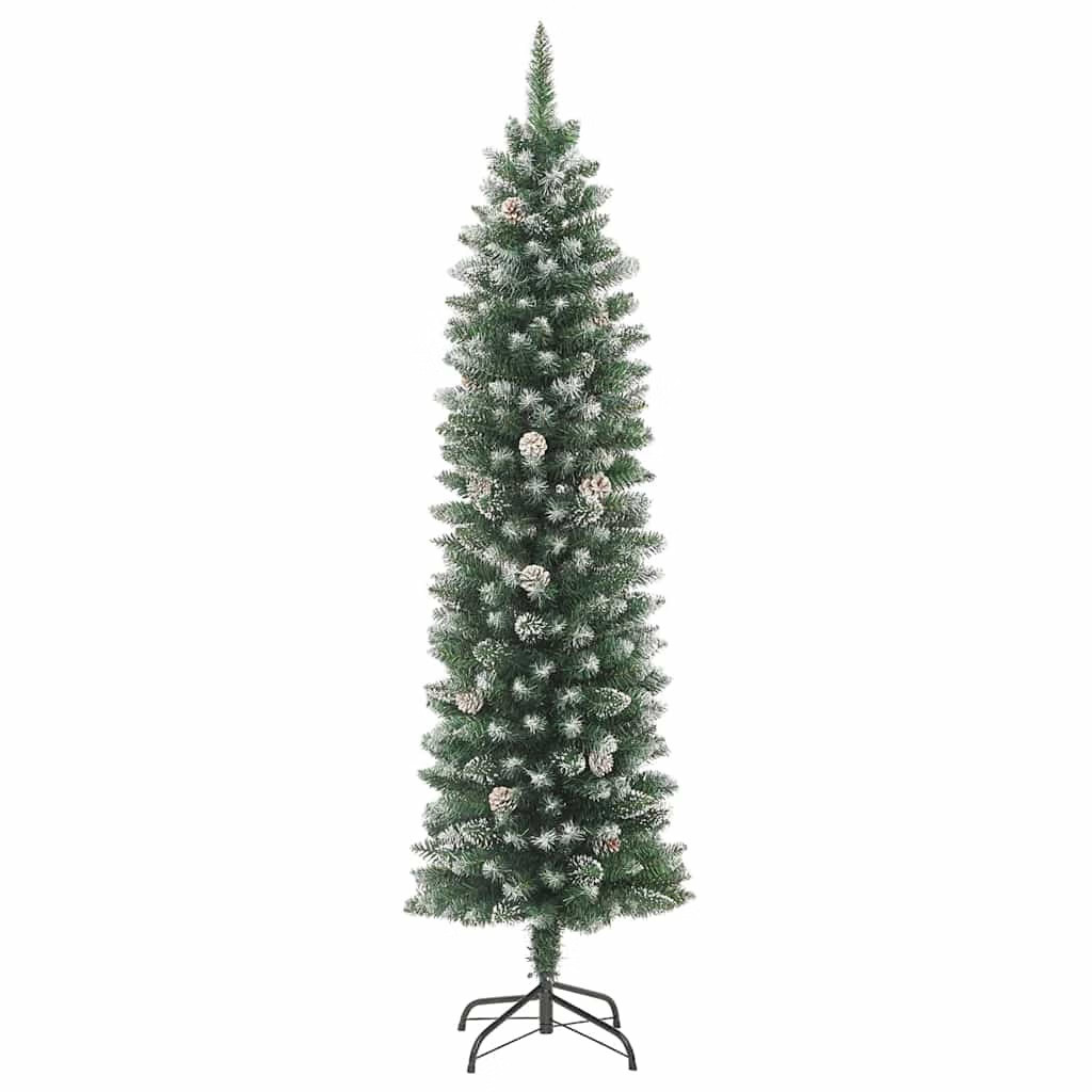 Gender: Unisex Size: 82.68 in Perfect for anyone who wants a stylish yet compact holiday decoration, the Artificial Slim Christmas Tree mixes modern flair with seasonal charm. Its slim, cone-shaped profile makes it great for smaller living rooms or sheltered outdoor areas. The lifelike PVC tips and stunning warm white LED lights create a warm and inviting atmosphere during the holiday season. Lifelike Tips: The Artificial Slim Christmas Tree comes with carefully crafted PVC tips that look just like a real tree. These realistic tips ensure a full, lush look that can enhance any room. Made of high-quality materials that resist wear, this tree stays vibrant year after year, and the artificial design means no mess from falling needles. Versatile Lighting Options: With flexible LED strip lights, this tree has 8 dynamic flash modes for any occasion. From twinkling to steady, the warm white light creates a cozy festive glow. These lights amp up the holiday spirit while being energy-efficient and longer-lasting than traditional bulbs. Space-Saving Structure: This tree's slim, modern design fits seamlessly into tight spots without taking away from the festive vibes. The narrow structure is ideal for smaller apartments, offices, or hallways, maximizing space while still looking grand during the Christmas season. Eco-Conscious Power Supply: Powered through a USB connection, this tree helps lower your electricity usage compared to traditional plug-in trees. This setup makes it easy to place anywhere, letting you decorate without worrying about finding nearby outlets. Simple Assembly: Designed for easy setup, this tree needs minimal tools and effort. With the manufacturer's instructions, two people can quickly and smoothly put it together, so you can focus on decorating and celebrating. Color: Green and white Material: PVC and metal and plastic Tree height: 82.68 in Bottom diameter: 21.65 in Stand size: 17.72 in Lifelike Tips Number of PVC tips: 450 Number of pine cones: 20 Lights type: LED strip lights Lights color: Warm white Number of LEDS: 300 Distance between LEDS: 3.94 in LED flash modes: 8 Power source: USB Batteries Included: No Voltage: 5 V Indoor & outdoor: Indoor and sheltered outdoor use Assembly required: Yes Delivery-contains: 1 x Christmas tree 1 x Stand 1 x LED string light 1 x Peak 15.75 x 1.18 in ball 15.75 x 1.57 in ball 15.75 x 2.36 in ball