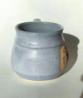 Artist signed rustic pottery mug. Periwinkle blue with imprint of leaves and flowers. Pre-owned - Very good condition. No chips, scratches, or stains. See photo as added description. Aprox. 3.5 inches tall x 3 inches in diameter. 5 inches across with handle.
