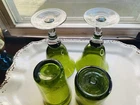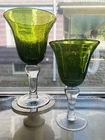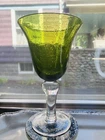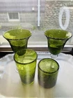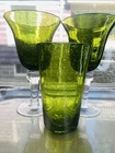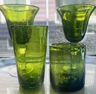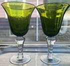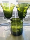 GRANDMA BEARS GLASSWARE ARTLAND IRIS GREEN WATER GOBLET WHISKEY HIGHBALL BUBBLE GLASS MIX BUBBLE SET OF 4 This beautiful set of 4 Glasses are made by Artland Glass and are the Iris Green Bubble Water Goblets, Whiskey, Highball Glasses. There are 2 Water, 1 Whiskey, and 1 Highball in this set. These glasses are Hand Blown and discontinued. They each have a Green Bubble Glass and Clear Stem. The 2 Water measures 8 1/8" tall and 4 1/2" wide and will hold 14 OZ. The 1 Whiskey measures 4" tall and 3" wide and will hold 14 OZ. The 1 Highball measures 5 7/8" tall and 3" wide and will hold about 17 OZ. Excellent Used Condition Please view photos carefully as they are considered to be a part of the item description and email any questions prior to bidding or purchase. Happy bidding. I am happy to combine shipping when asked prior to purchase or bid. BE SURE TO SEE ALL MY OTHER RARE ANTIQUE, VINTAGE AND UNIQUE COLLECTIBLE LISTINGS ON GRANDMA BEARS GLASSWARE! THANKS VERY MUCH, PAM The tray in the photos is not included in the order. They are sold separately in my store. I try to keep Shipping Costs down by using Recycled Paper and Packaging and using the weight and size to determine the most cost effective and safe Delivery to you. Buying Vintage is Great for the environment and will help prevent land fills. I soak every piece in Organic Cleaning Solution and inspect and try to verify and identify to the best of my ability. Please read descriptions and photos to determine for yourself . I love going to Estate Sales, Flea Markets and Private Auctions to find and bring the very best of unique and rare Glassware, Art Glass, and Crystal to your door! Please let me know if you have any questions or concerns.