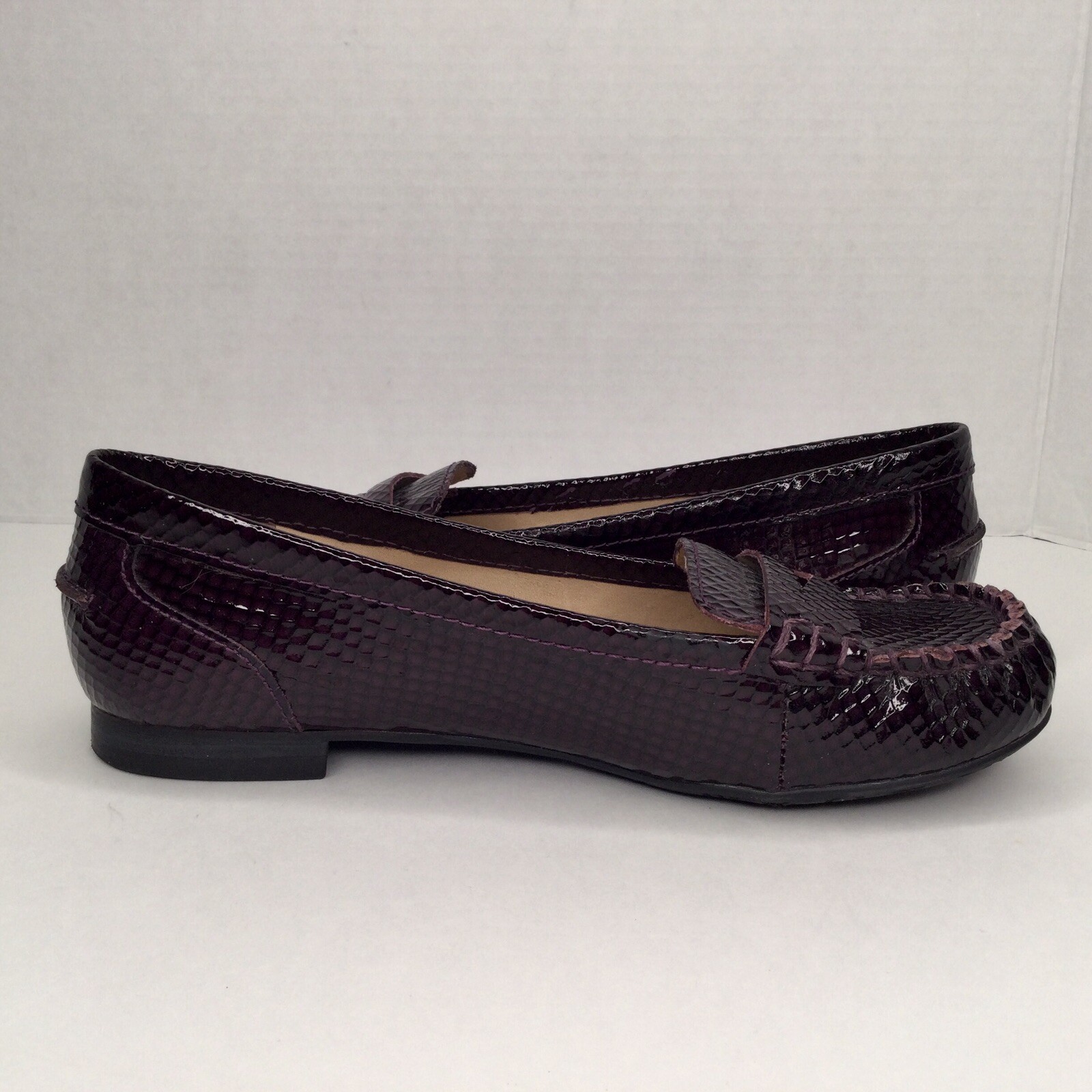 Arturo Chiang Size 7.5 Leather Upper Penny Loafers Dark Purple Patented Leather. Shipped with Canada Post Regular Parcel.