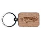 Asian Arowana Aquarium Dragon Fish Engraved Wood Rectangle Keychain Tag Charm