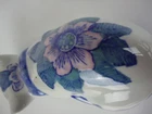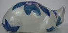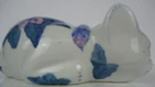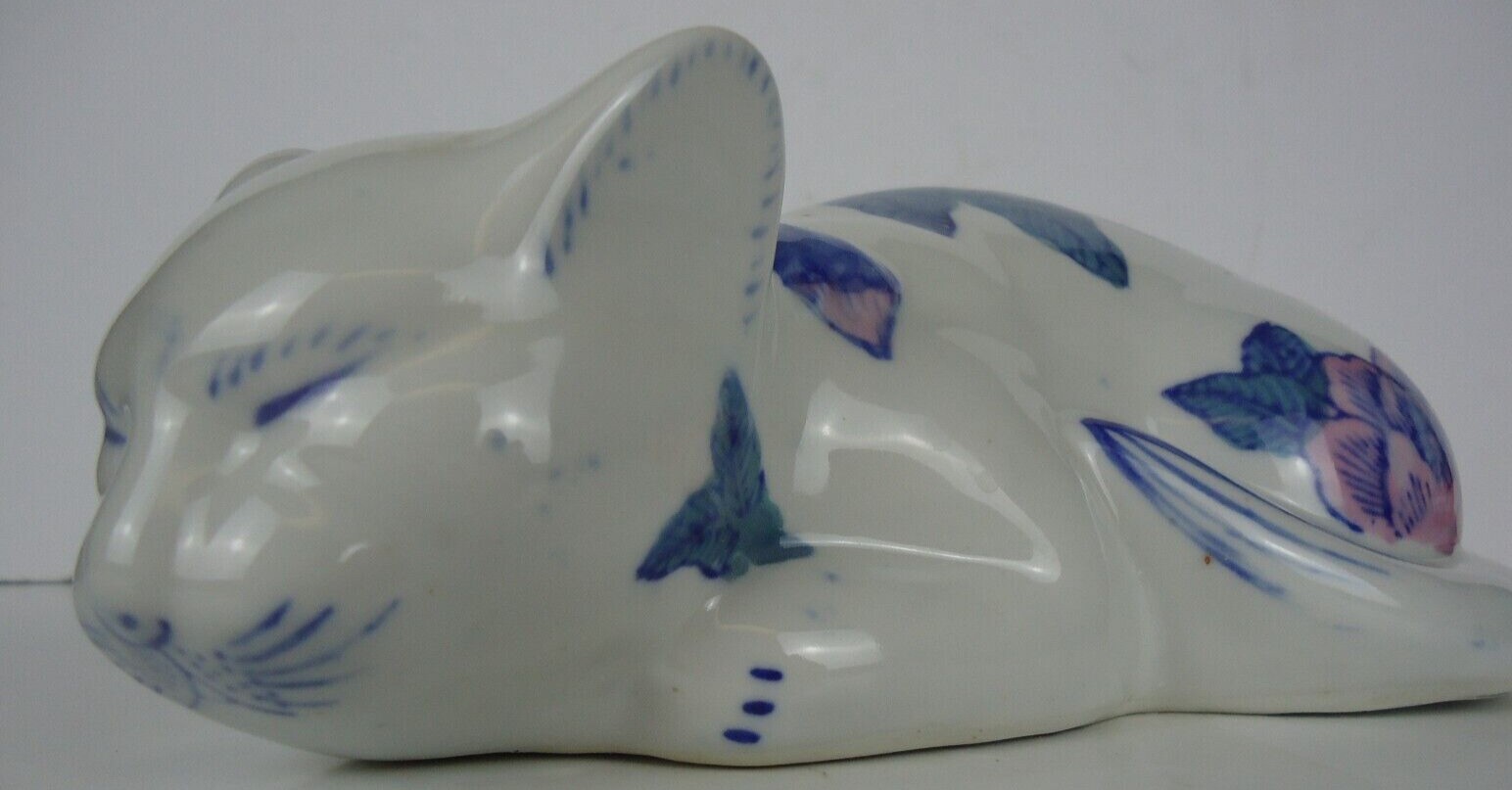 Asian Ceramic Sleeping Cat Statue 8x4 Inch Hand-Painted Floral Decor