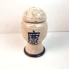 This beautiful ginger jar is a true work of art. Hand painted with intricate details on sandstone, it is a unique piece that will add a touch of Chinese culture to any collection. The jar is made in Asia and is a perfect representation of the region's rich artistic heritage. It is a must-have for collectors of Asian art and culture. The jar is in great shape and is sure to be a conversation starter in any room.