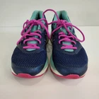 Asics Gel-Cumulus 18 - blue and pink Asics running shoes, women's size 9. They're in great condition, no holes, has small stain on the logo of left shoe (see pictures). Theyve been thoroughly cleaned before listing Please reference photos before purchasing