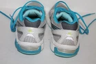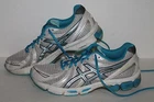 I have a great pair of Asics Gel Exalt Running Shoes, Women's US Size 9 . #T379N. White, turquoise and silver. Please note there is some wear on the soles--see pictures. These shoes have some general wear but are in great condition with lots of life. Suggested retail is $69.99 Check out my other items !Be sure to add me to your favorites list ! 022015