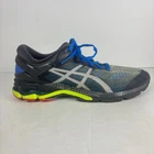 Asics Gel-Kayano 26 "Hyper Flash Graphite" - Black/Green/Blue asics athletic running shoes, mens size 10. Theyre in great condition, no holes or stains Tread is pretty worn Theyve been thoroughly cleaned before listing Please reference photos before purchasing