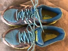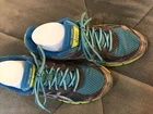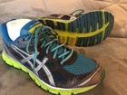 Asics Gel Scram T2J6N Teal Green Flourescent Yellow Gray Black Womens US 8.5 Pics are part of description - Please see all pics for quality and wear of preowned item - see pics of wear and see pic of right shoe tread on outside of shoe one tread light peel