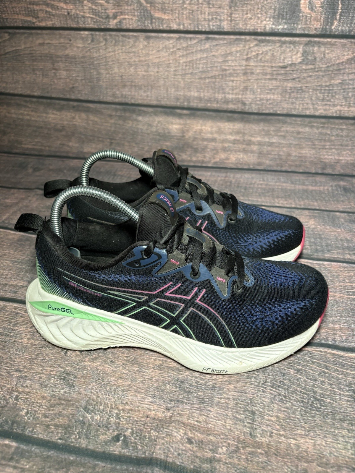 Asics Gel-Cumulus 25 Running Shoes Sneakers Womens Size 8 Blue Pink Green Gym. Condition is Pre-owned. Shipped with USPS Ground Advantage.