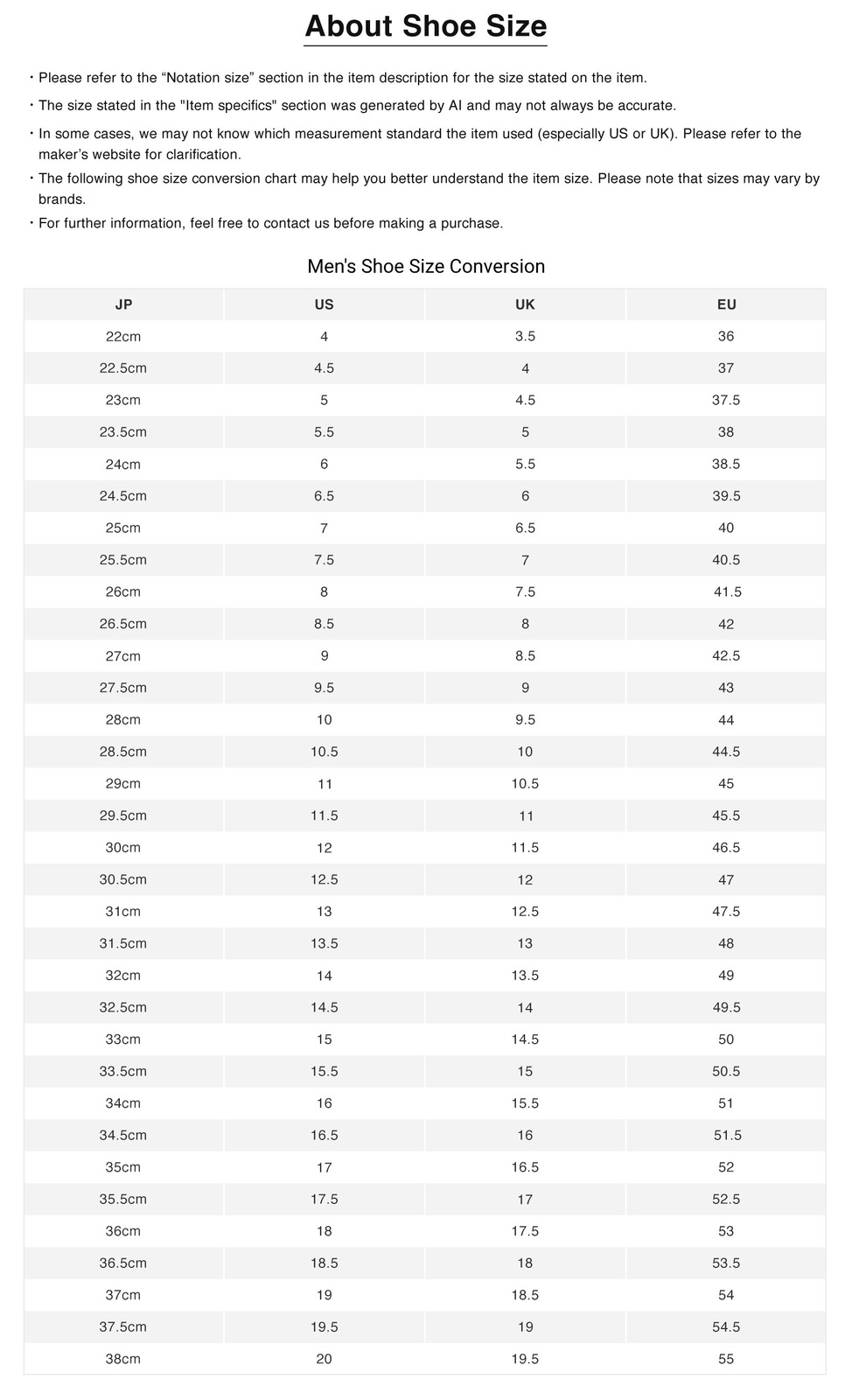 • Before purchasing, please read this page in conjunction with the notes at the bottom of the page, and by placing an order and making payment, you agree to be bound by the product conditions and notes. • International shipping will be facilitated through our central shipping center in Japan. Please allow approximately 10 business days for us to handle the item, from dispatching it from our local store to preparing it for international shipping in our central shipping center. • Tracking number will be provided only after the item reaches our central shipping center in Japan. • Item details and descriptions have been translated by AI, so occasional mistakes may occur. If you encounter any issues, please don't hesitate to reach out to us. PRODUCT INFORMATION Customized No Theme Others Model Others Country/Region of Manufacture Unknown US Shoe Size Multisize UK Shoe Size Multisize EU Shoe Size Multisize Vintage No Brand ASICS Style Sneaker Department Men Type Athletic Color Clear Product Line Others Character Others Others ・Brand: ASICS · Model: Gel Lyte ・Release date: 2021/12/24 ・Style Code: 1201A050-021 ・SNKRDUNK appraisers with expertise with tens of thousands or more appraisal records will carefully evaluate. ・After completing the authenticity test by an appraiser, we will install an authenticated badge and deliver it to the customer. products/1201A050-021 ABOUT CONDITION Regarding Trading Cards: For sealed card packs, the distribution of rare cards cannot be guaranteed. A Gem Mint. (similar to PSA10) B Mint, minor scratches, damages or bents. (similar to PSA9-9.5) C Near Mint, slight scratches, damages or bents. (similar to PSA8) D Excellent or below, obvious scratches, damages or bents. (similar to PSA7 or below) About Us Sneaker Dunk (SNKRDUNK) is Japan's No. 1 sneaker and trading card flea market app, with over 6 million monthly users. Committed to authenticity, every item in each transaction undergoes thorough verification to prevent the distribution of counterfeit products, ensuring users can shop and trade with peace of mind. All items in SNKRDUNK are carefully inspected by experienced appraisal experts. Only genuine items will be given a certified label before being shipped to buyers. About Payment • Only eBay managed payments are accepted. • We do not do transactions outside of eBay. Shipping & Taxes • All items will be shipped via Japan Post with tracking service (EMS or ePacket). • All orders will be shipped from Japan to the registered address on the buyer's eBay account. • Shipments may be delayed due to bad weather, public holidays, customs office delays, and other conditions beyond our control. • All customs duties, import taxes or related fees occurred during shipping are the responsibilities of the buyer. If you have any concerns, please inquire directly with your local customs office before making a purchase. Return & Cancellation Policy • All listed items are also available at our retail store and multiple online platforms in Japan. In the event that an item is out of stock or sold, we will issue a cancellation along with a full refund. • If you wish to return an item for a refund, please contact us directly before initiating a return or opening a case. • For damaged items or discrepancies with the item description, please reach out to us directly within 10 days of receiving the item, providing pictures of the damaged area or issues. • Unless the item is damaged or does not match its description, buyers will be responsible for the return shipping fee. > All returns must be shipped to our address in Japan with a tracking number. > Refunds will be processed once the returned item has arrived safely. • Buyers who violate eBay policies or misuse eBay's Money Back Guarantee will be reported and blocked from future purchases. click here to see our store