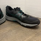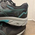 These are ASICS Gel-Venture 8 women's running sneakers in black, size US 10 (UK 8, EU 39.5). They feature lace-up closure, a low-top shoe shaft style, synthetic upper material, rubber outsole, and B width. The sneakers offer arch support, cushioning, comfort, a cap toe, and breathability, making them suitable for activities like running and casual wear. The model number is 1012B230 under the ASICS GEL product line.