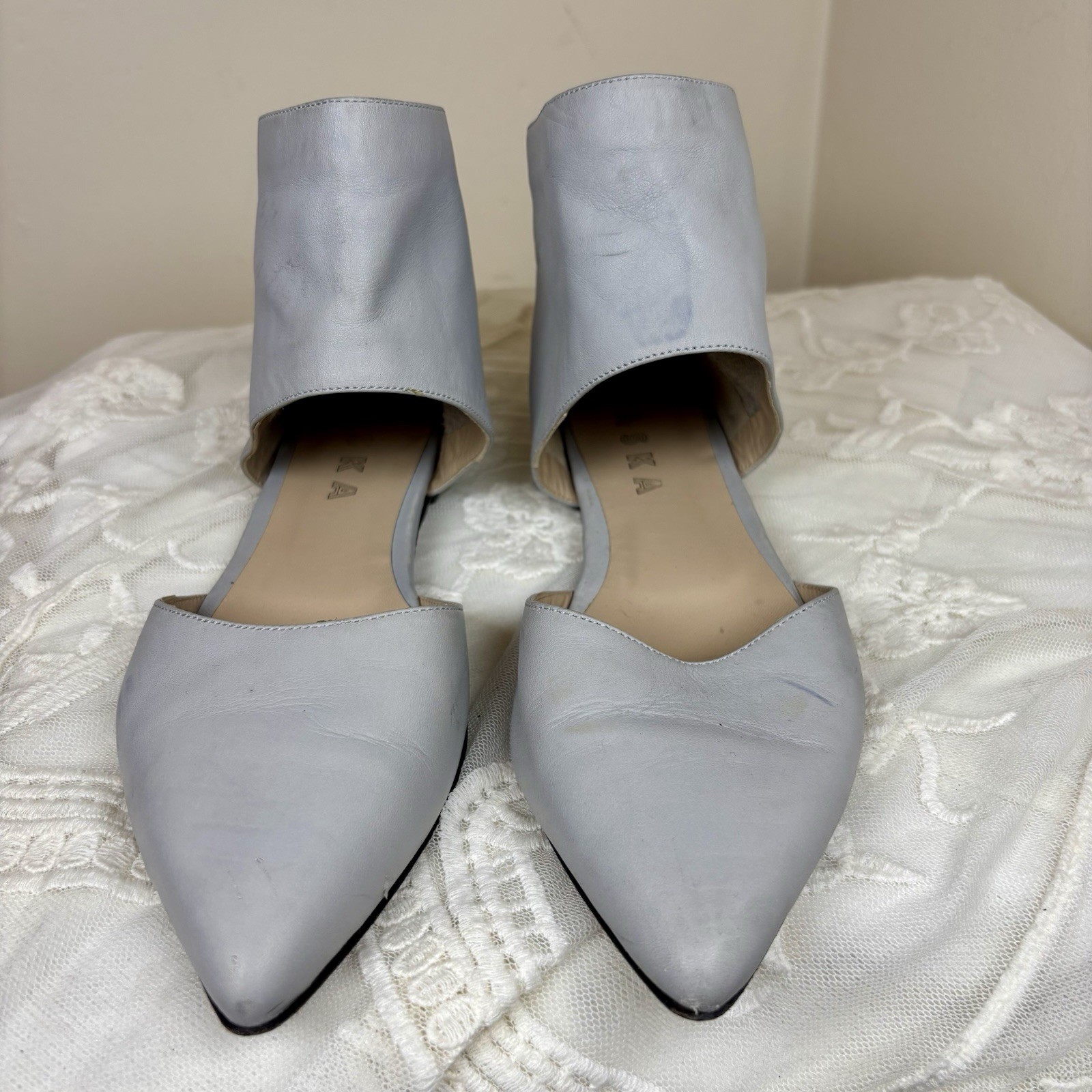 >>> Slight marking on both shoes<<< See Photos Elevate your shoe game with these stunning Aska Veto Cuoio heels. Crafted from high-quality leather, these platform shoes feature a beautiful gray/blue color that will complement any outfit. The insole and upper materials are also made of leather, ensuring maximum comfort and durability. These heels are a women's size 7.5, but they also fit a size 8 US. They have a stylish platform design that adds both height and comfort. The brand, Aska, is known for their high-quality shoes, and these heels are no exception. Add them to your collection today!