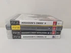 Assassins Creed PS3 Sony PlayStation 3 - 4 x Game Bundle Bulk Lot Complete PAL. Immerse yourself in the thrilling world of Assassin's Creed with this bundle of four games for the Sony PlayStation 3. Join the ranks of skilled assassins and experience intense martial arts combat, captivating role-playing elements, and adrenaline-pumping action and adventure. Published by Ubisoft, this MA 15+ rated collection includes a manual for each game, guaranteeing hours of entertainment for fans of the popular video game series. Get your hands on this complete bundle and dive into the gripping world of Assassins Creed on your PS3.