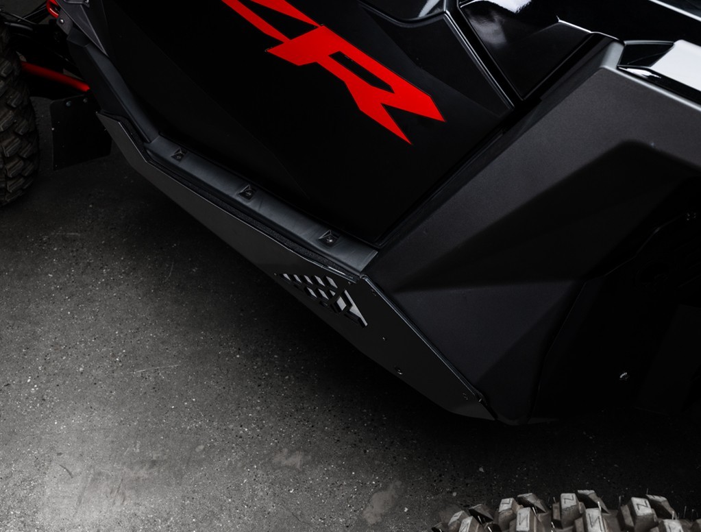 DESCRIPTION The Ultimate Armor for Your RZR Pro XP Tackle tough terrain confidently with Assault Industries' Rock Sliders. They’re ultra-tough—made from lightweight aluminum. Plus, they have a sleek look, so your Polaris RZR Pro XP will stay looking good. 1/4” Thick Aluminum Construction Assault Industries' designed these rock sliders are designed to take a beating. They’re made from lightweight 1/4” aluminum—so they won’t weigh you down. Plus, they’re two times thicker than any of our competitors. Seamless Fit You won’t have to worry about getting caught on stumps, rocks, or other debris when you install these RZR Pro XP rock sliders. They’re engineered to have a gapless fit, so you’ll glide easily over any obstacles. The sleek, smooth design helps keep mud and dirt from collecting. FEATURES Beefy 1/4” aluminum construction Lightweight and durable Includes all hardware Zero-snag design with no holes or gaps Powder coat prevents rust and corrosion Resistant to scratches and fading FITMENT Polaris RZR PRO XP : 2020+ Polaris RZR PRO XP 4 : 2020+ NOTE: Compatible with SuperATV and OEM skid plates