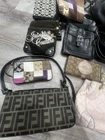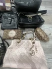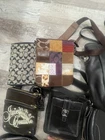 The product is a bundle lot of 14 assorted multicolor Coach and other bags including a wallet. The bags are of shoulder bag style with a zipper closure and made of canvas exterior material. This collection of women's handbags and accessories offers a variety of colorful and trendy options for any outfit or occasion. Sold as is Some are in good condition while others have imperfections