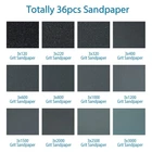 MEETS ALL YOUR NEED - Including 3 sheets of each grit: 120/220/320/400/600/800/1000/1200/1500/2000/2500/3000, total 36 sheets. PREMIUM QUALITY - Made of waterproof silicon carbide, electro coated ensures the grit distributed homogeneously, good for wet and dry sanding. MULTIFUNCTIONAL - Suitable for use in art and craft, wood work, automotive, metal, and plastic applications for buffing and polishing. EASY TO IDENTIFY - The grits of the sandpaper are printed on the back for easy identification. Product size: 9 x 3.6 inches, also can be cut into any smaller size you need easily. Product Description 120 to 3000 Assorted Grit Sandpaper for Wood Furniture Finishing, Metal Sanding and Automotive Polishing, Dry or Wet Sanding, 9 x 3.6 Inch, 36-Sheet Package Includes: 120/220/320/400/600/800/1000/1200/1500/2000/2500/3000 grit sandpaper X 3 Recommended use: 120 to 220 grit sandpaper: for rough sandpaper sanding and scratch removal. 320 to 400 grit sandpaper: for light sanding between surface coatings, and for sanding metal and other hard surfaces. 600 to 1000 grit sandpaper: for final touch-ups before painting 1200 to 1500 grit sandpaper: for sanding between coats 2000 to 3000 grit sandpaper: for polishing
