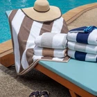 The unique Aston & Arden Reversible Beach Towel features a different color stripe on both sides of the towel. This plush, absorbent, oversized, soft ring spun cotton cabana towel gets its inspiration from the nautical travels of Aston & Arden's founder. Everything feels better when you wrap yourself in a soft extra-large beach towel with vibrant colored stripes. Our oversized beach towels are perfect for a lazy day at the pool, a trip to the beach, or to brighten up a bathroom. Machine Wash with like colors. Do not bleach. Tumble dry low. Care for your beach towels properly, and your extra-large beach towels will look new and fresh even after multiples washes.Features: Oversized Beach Towels Reversible towel with complementary or contrasting colors Unique striped end hem to give a chic Free Shipping Over $49.99* Details Aston & Arden Striped Reversible Oversized Beach Towel - 35x70 Product Description: The unique Aston & Arden Reversible Beach Towel features a different color stripe on both sides of the towel. This plush, absorbent, oversized, soft ring spun cotton cabana towel gets its inspiration from the nautical travels of Aston & Arden's founder. Everything feels better when you wrap yourself in a soft extra-large beach towel with vibrant colored stripes. Our oversized beach towels are perfect for a lazy day at the pool, a trip to the beach, or to brighten up a bathroom. Machine Wash with like colors. Do not bleach. Tumble dry low. Care for your beach towels properly, and your extra-large beach towels will look new and fresh even after multiples washes. Features: Oversized Beach Towels Reversible towel with complementary or contrasting colors Unique striped end hem to give a chic look Machine Washable Dimensions: Beach towel is 35 inches wide by 70 inches long