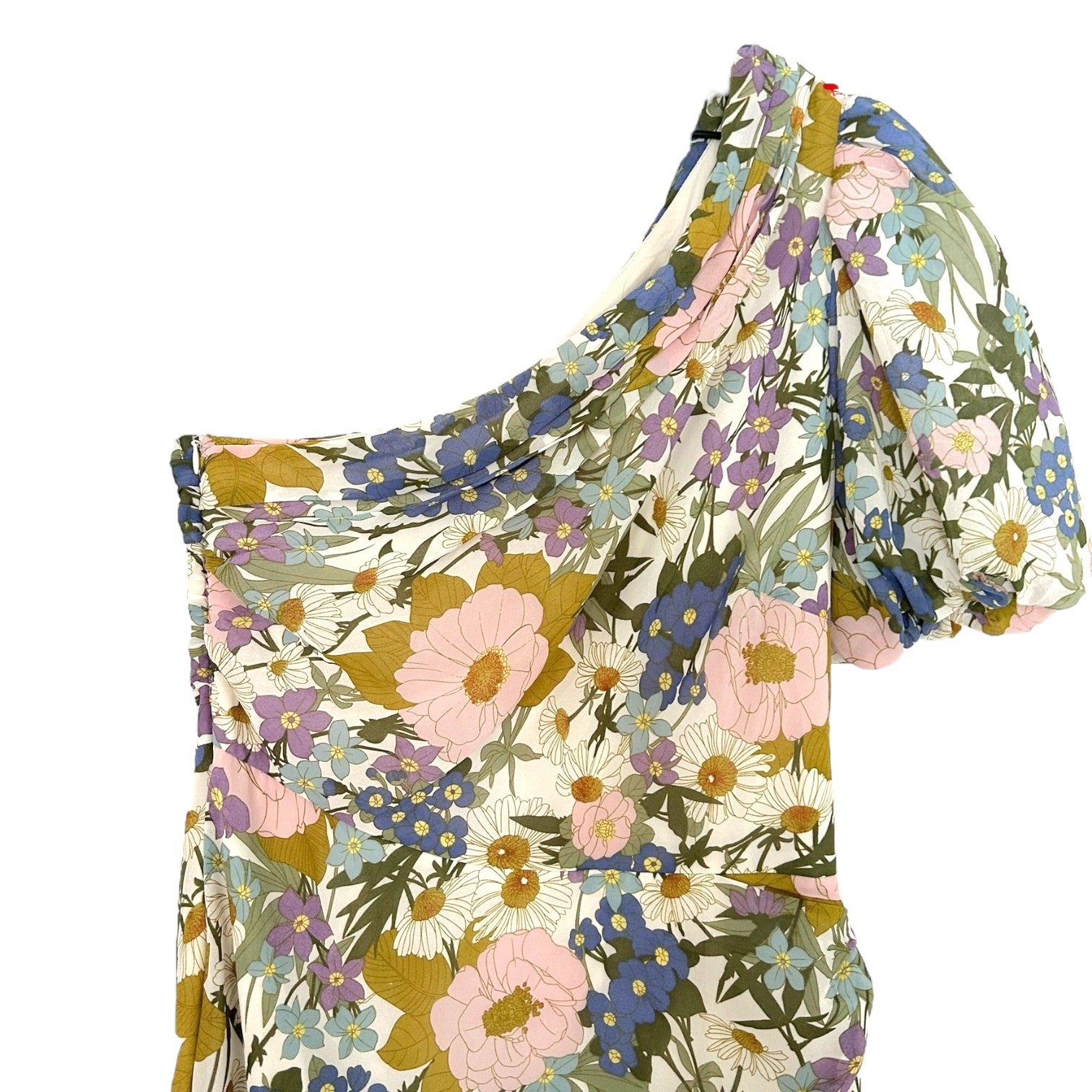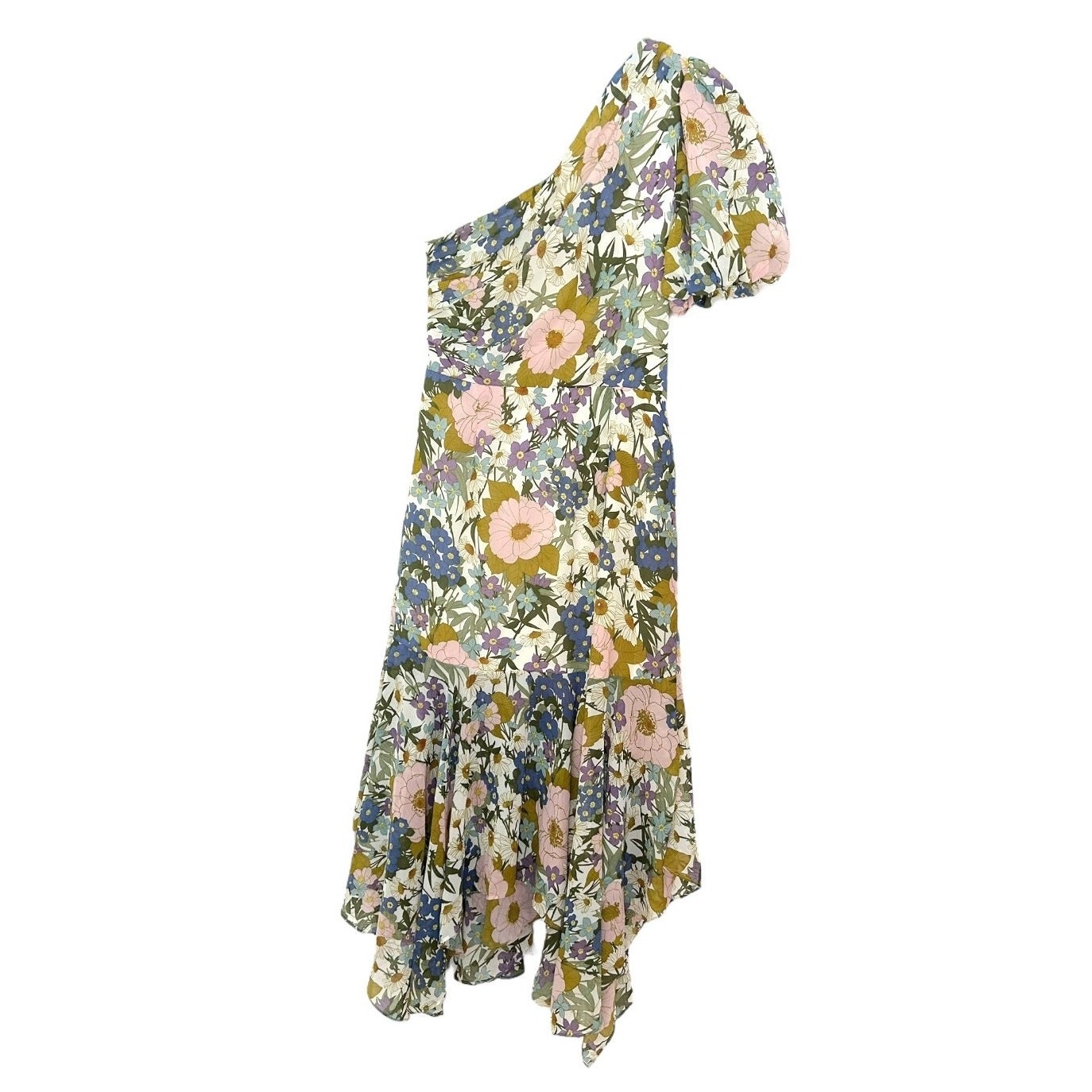 Astr the Label Santorini Off White Retro One Shoulder Asymmetrical Midi Dress Medium Color: Off White Retro One Shoulder Chiffon Overlay Hidden Side Zipper Puff sleeve with elastic trim. Partially lined Handkerchief hem Asymmetric Overlay Flyaway Opening Size Medium Chest 18", Waist 15" NWT, New with tags
