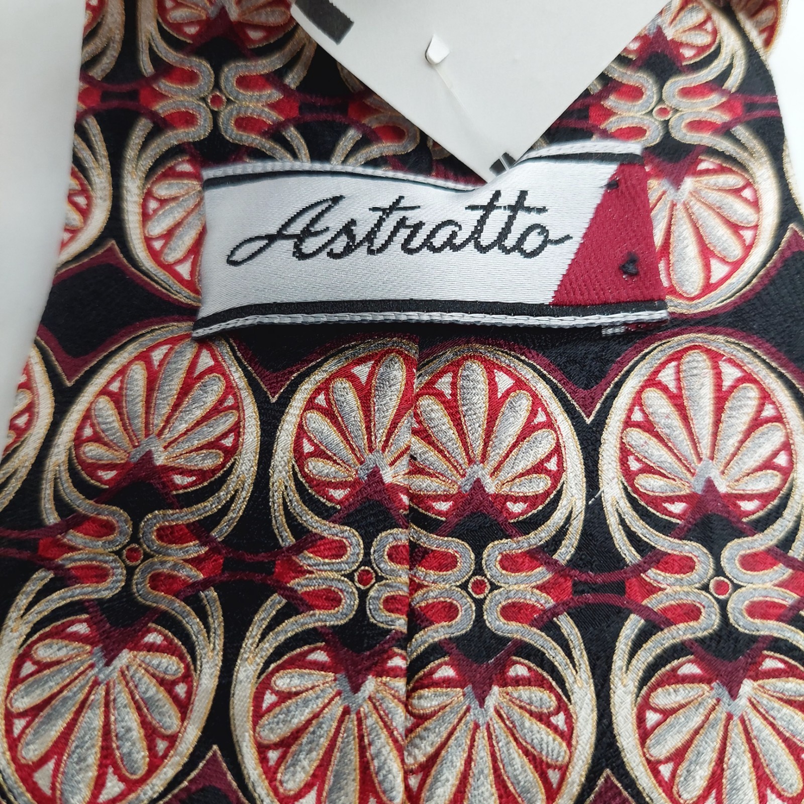 Buckingham Black Red Floral Leaf Print Polyester Necktie