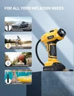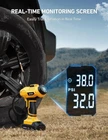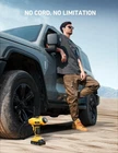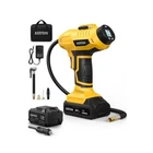 About this item 【METAL INFLATABLE STRUCTURE】: It’s composed of metal cylinder and metal gear, it could continuously work for 20 minutes, the maximum air pressure could reach 160psi, meet the needs of 4 tires at a time, more efficient and faster to use. 【DUAL POWER SUPPLY】: DC 12V power supply and 20V rechargeable battery pack power supply make the inflation more easily. The bottom is stable enough. You don't have to worry about it running out of the battery during the trip. This item includes a battery and a charger(The Battery and Charger are also sold separately). 【AUTOMATIC SHUT OFF&LCD PRESENT MORE】: Preset the value you desire and the air compressor will automatically shut off when the value is reached. The back-lit LCD screen will display both the desired tire pressure value and the current tire pressure. The unit of air pressure can be switched among bar, kpa and PSI. 【FAST INFLATION&CHARGING】: Air/Electricity The 20V working voltage provided by the rechargeable battery can inflate fast, tires of size 195/65/R15 can be filled in just 4 minutes. The 2000mAh high-efficiency rechargeable battery can charge 4 tires of the same size at a time, and the exclusive charger allows the battery to go from 0 to full in just 1 hour. 【MULTIPLE PURPOSE&EASY TO USE】: The air compressor is compatible with Automotive, SUVs, cars, motors, bicycles, and basketball-size inflatable products. Note: not suitable for large truck tires. Attached with an exclusive storage bag, easy to carry. The LED light also allows you to inflate in the dark. What's in the box 1 Lithium Ion battery, a charger, and a storage bag