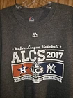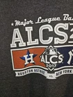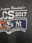 Gear up for the intensity of the postseason with this Astros vs Yankees 2017 ALCS Playoffs T-shirt. Sized extra-large for a comfortable fit, it's designed for the dedicated fan who wants to showcase their allegiance to their favorite MLB teams. The shirt features a striking gray color that makes it a versatile addition to any sports wardrobe. With a focus on quality and fan pride, this tee boasts a double-sided graphic logo, prominently displaying the iconic logos of both the Astros and Yankees. Whether you're at the game or just out and about, this shirt is a great way to celebrate America's pastime and express your support for your team.