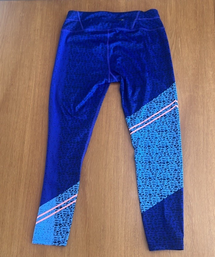 Athleta Asym Camo Sonar 7/8 Leggings, Back Zip Pocket, Blue & Black, Size M