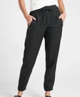 Athleta Cabo Linen Jogger Black Lightweight High Rise sz 10 Breathable Pull On