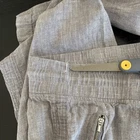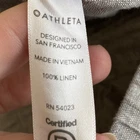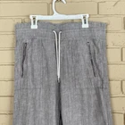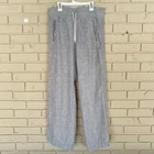 Elevate your casual wardrobe with these Athleta Cabo Linen Wide Leg Pants. The pants are perfect for travel and beach outings with its relaxed fit and high-rise elastic waist. The pull-on closure adds to the comfort and ease of wearing the pants, while the pockets provide practicality. The pants are made of woven linen material, which is perfect for the summer, fall, and spring seasons. The gray color and solid pattern make it easy to pair with other wardrobe items. With a 32-inch waist size and 31-inch inseam, these pants are a size 6 and fit regular sizes. The wide-leg style and coastal and beach theme make it a stylish addition to any wardrobe. NOTE: few pulls in fabric at waist. See pics