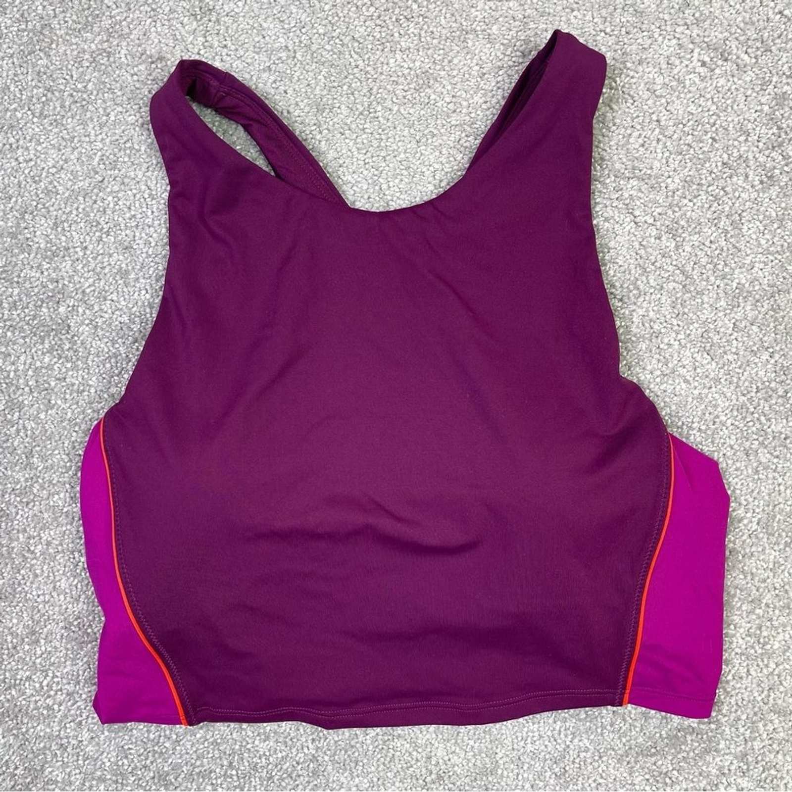New with tags. Size medium D-DD Cup Size Purple/Pink colorblock. Light support for workouts. Padded - Removable Padding.