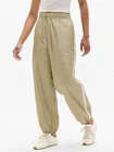 Product Details FOR: Warm-weather travels, resort vacations, and to and from the beach FEEL: LusterLuxe is airy, quietly shine-catching, with an understated rippling texture FAVE: Billowy parachute pant legs for all-day, breezy comfort Two drop-in pockets, plus internal pocket to hold cards Elastic waistband with adjustable drawcord Fit + Sizing Relaxed for a wide range of motion Mid rise, sits below the natural waist Inseam: Petite 27", Regular 29", Tall 32" fabric + care 100% Nylon BREATHABLE: Airflow moves easily through the garment Imported.