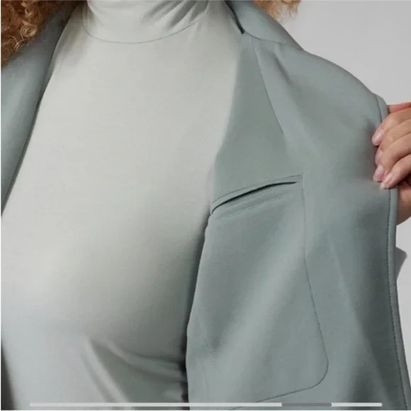 Athleta Eastbound Blazer Minimalist Gray Sage Green Great condition! Size 4 Approx measurements garment laying flat Pit to pit 20.5” Shoulder to hem 29.5” Sleeve 26” Athleta Eastbound Blazer in Minimalist Gray / Sage Green Ponte fabric with Tencel- has the perfect balance of stretch and softness. Easy-access pockets to stash your essentials Relaxed fit Long Sleeve Open front Lyocell/Nylon/Spandex •No Returns No Holds No Trades
