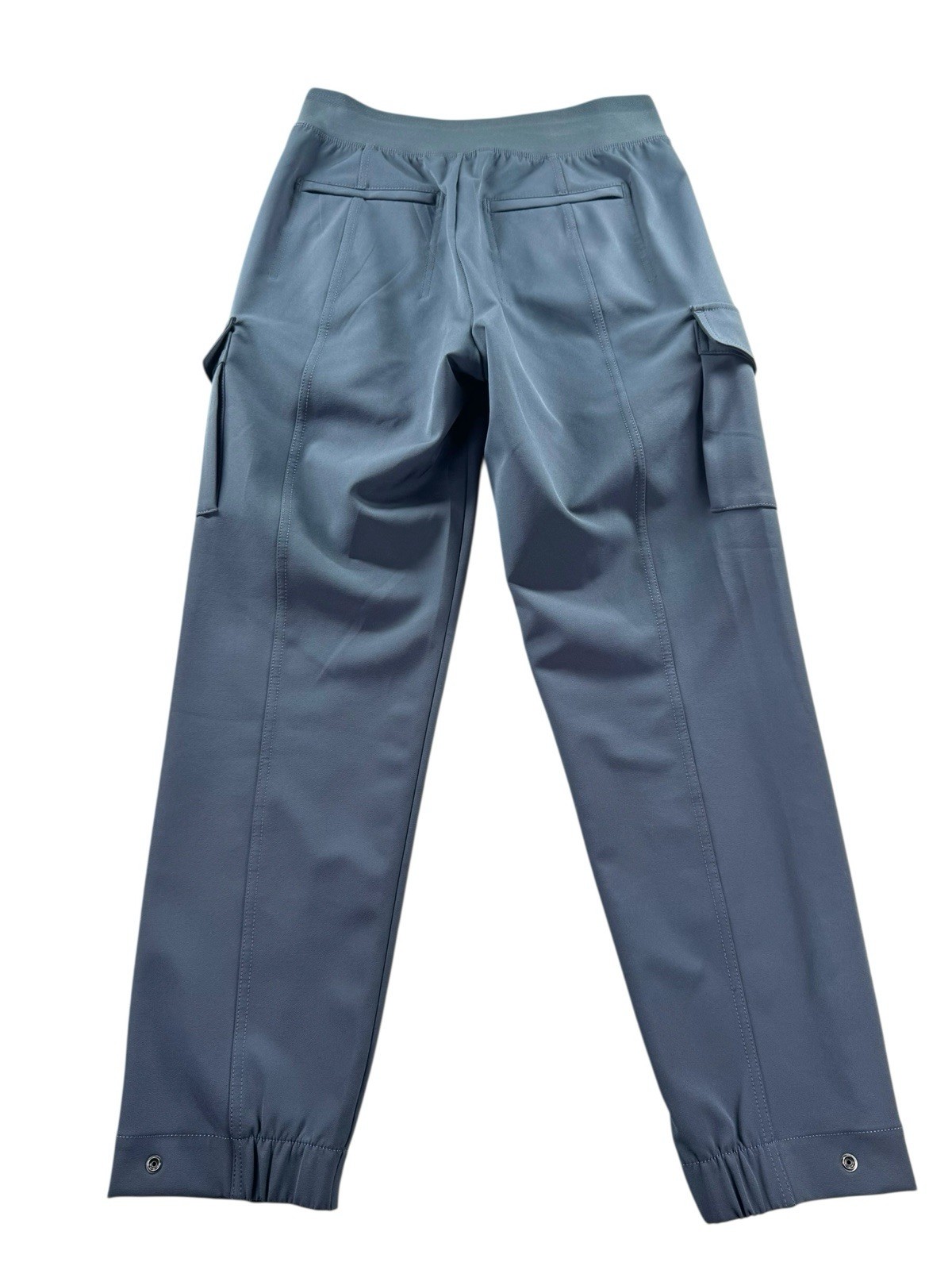 Athleta Endless High Rise Utility Cargo Pant Sz 6 Blue Snap Hem High Rise Condition: Great Preowned Condition Returns: I offer a 30 day free return on most items. Material: 86% polyester, 14% spandex Ships quickly and comes from a smoke-free home! Please refer to photos for size measurements / reach out with any questions or if you are wanting additional photos!