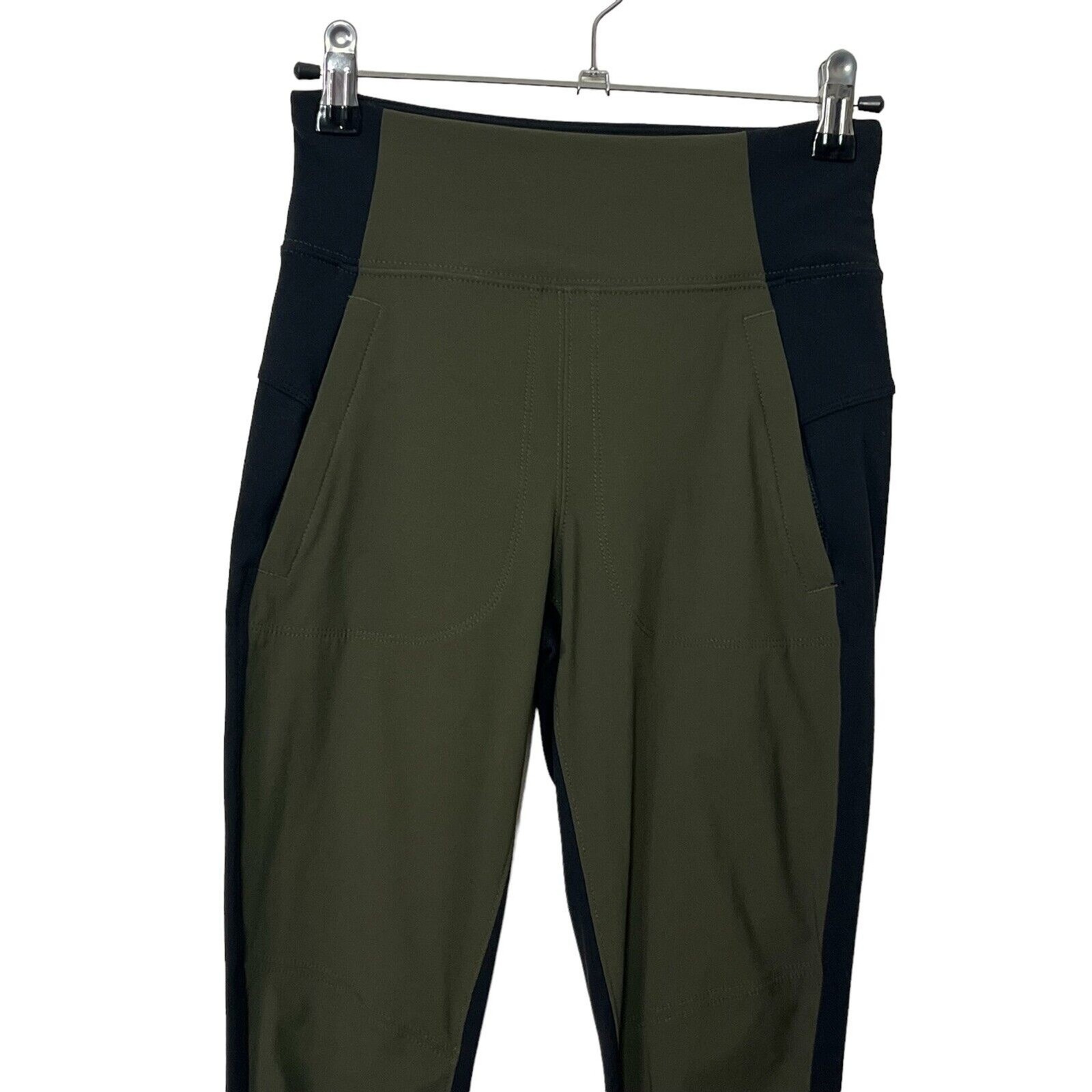 These Athleta Highline Hybrid ankle tights offer breathable support with a ponte stretch fabric and colorblock design in olive green and black. Brand: Athleta Style: Highline Hybrid Ankle Tight Color: Olive Green and Black Size: Women’s Size 2 Material: Front Body: 90% Nylon, 10% Spandex; Back Body: 88% Supplex Nylon, 12% Lycra Spandex Features: Pull-on fit, Ankle length, Ponte stretch fabric, Breathable, Colorblock panels Measurements (approx.): Waist 11.5 in, Rise 9.5 in, Inseam 27 in Condition: Pre-owned; in excellent condition. No rips, stains, or holes. Please review all photos for condition confirmation. Style Tags: ponte leggings, hybrid activewear, ankle tights, breathable fit, colorblock style Aesthetic Tags: performance chic, fitness fashion, urban active, sleek utility, gym to street