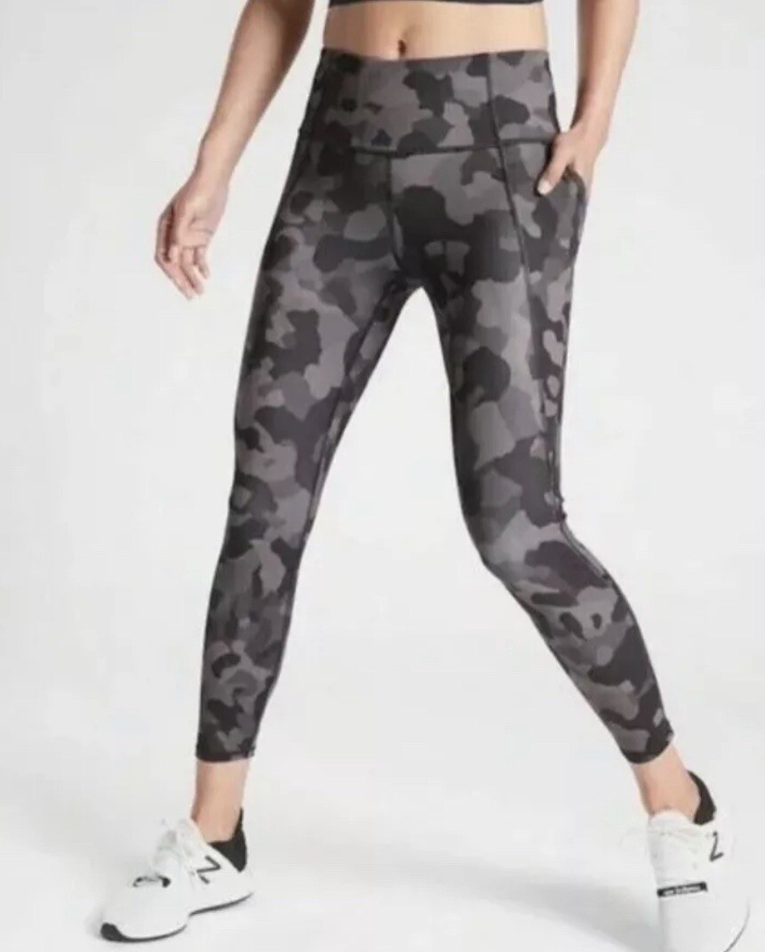 Athleta Lightning Camo 7/8 Tight Women’s Size S Small Gray Black Zip Pocket no stains or holes