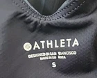 Elevate your activewear game with this Athleta Lightning Print Conscious Support Racerback Tank Top Sports Bra in size Small. Perfect for any performance or activity, this tank top features a solid pattern with a round neckline and sleeveless design. The pullover closure and racerback strap type provide a comfortable and secure fit, while the built-in bra and stretchy, breathable fabric offer slimming and easy-care features In excellent condition
