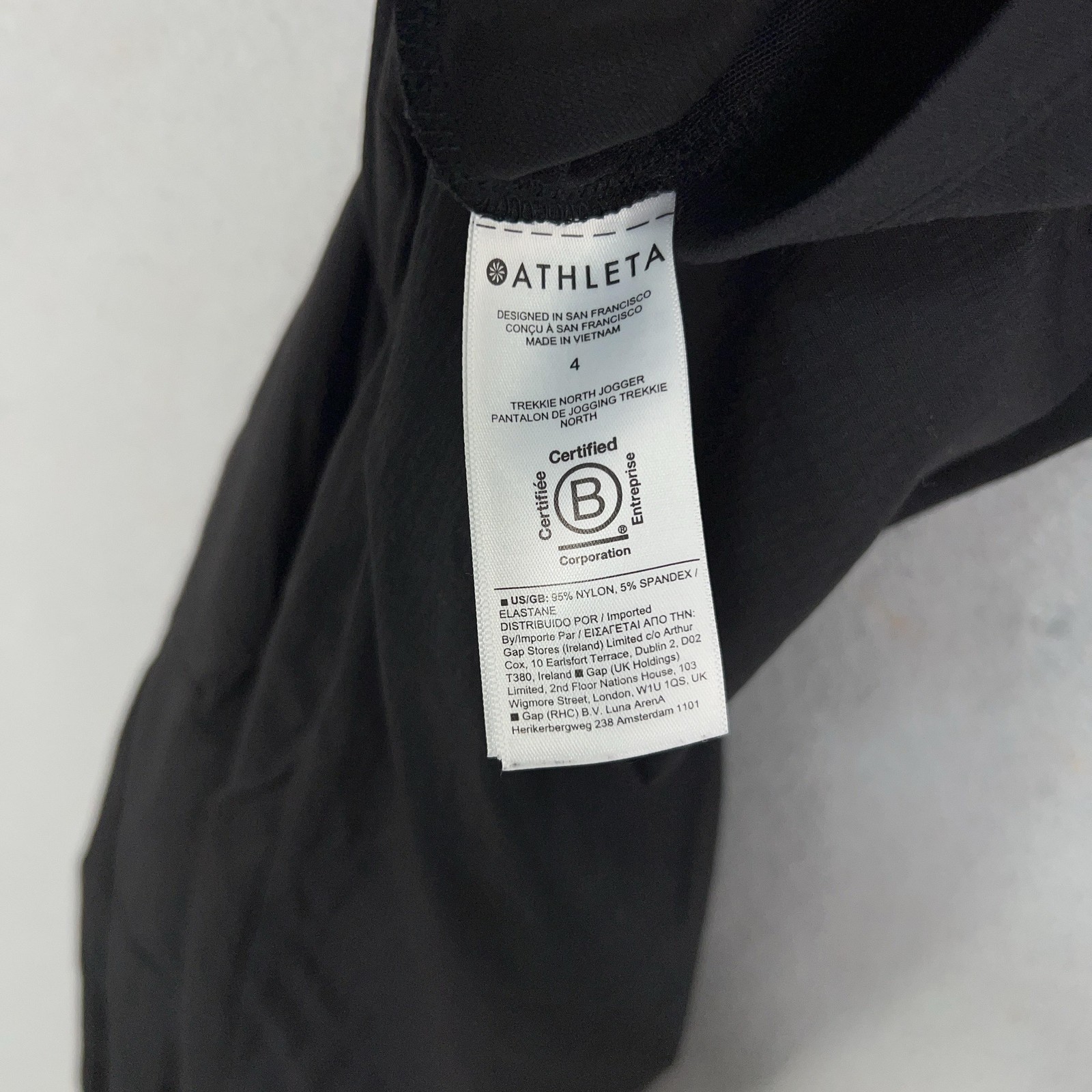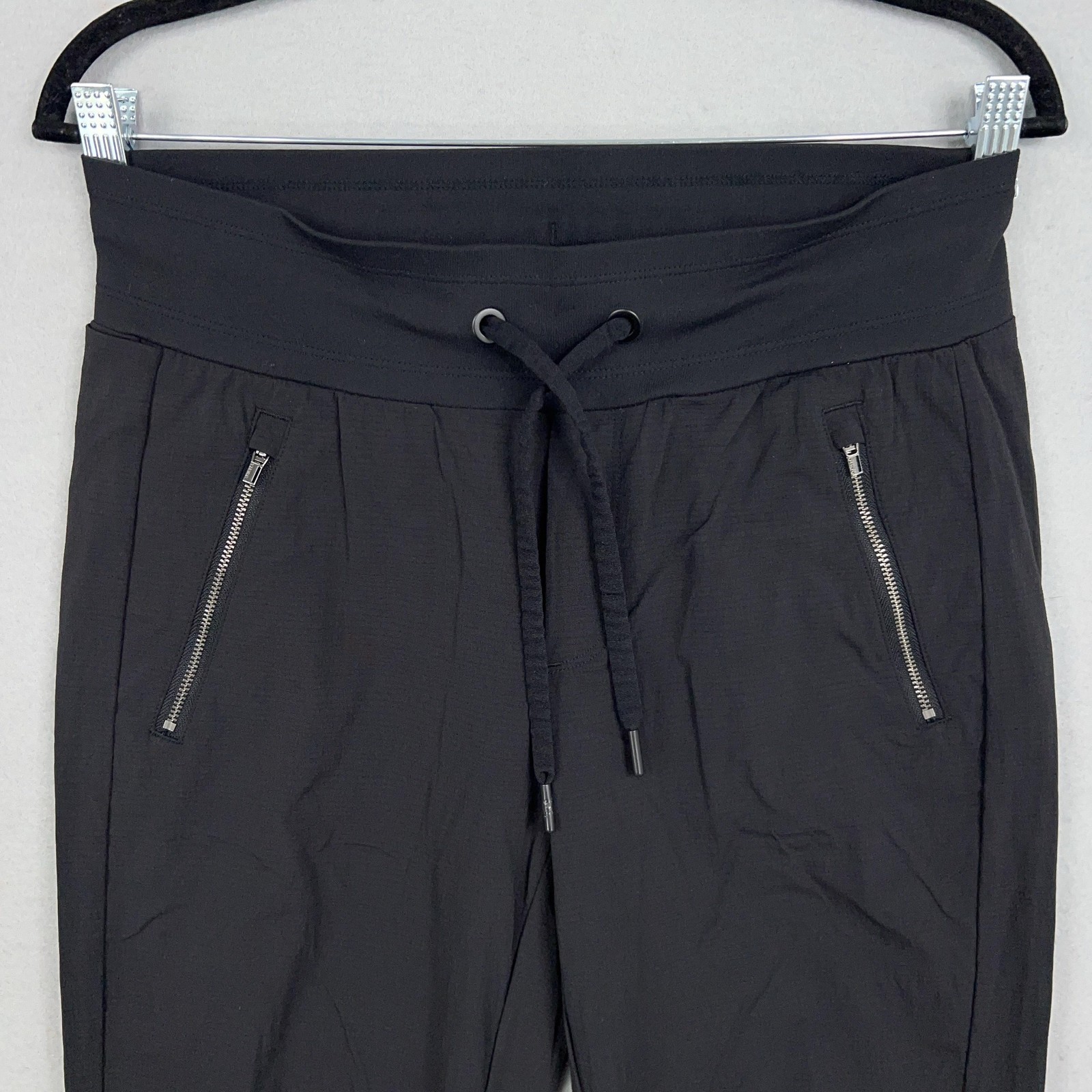 Athleta Pants Womens 4 Black Trekkie North Jogger Outdoor Hiking Gorp Travel Lightly worn with minor wrinkling from storage. No holes, stains, or pilling noted. Drawcord and all zippers function properly. Brand: Athleta Style: Trekkie North Jogger pants Gender: Womens Tag size: 4 Color: Black Fabric: Nylon-spandex blend with light stretch (lightweight woven) Features: Wide high-rise ribbed waistband with internal drawstring Features: Two front zip hand pockets Features: One back zip pocket Notes: Subtle textured fabric; ideal for travel, training, or casual wear. 22178 Measurements: - Previous washings may change the sizing written on the tag. - Please refer to the photos above for all measurements. - Please compare our measurements to that of one of your favorite garments. - Please note, item measurements are approximate . All items are bagged and sealed after being photographed, then stored in a smoke free environment to ensure the item is exactly the same as when photographed. All items have been washed per eBay standards & policies. I carefully package and ship daily. Feel free to contact me with any questions.