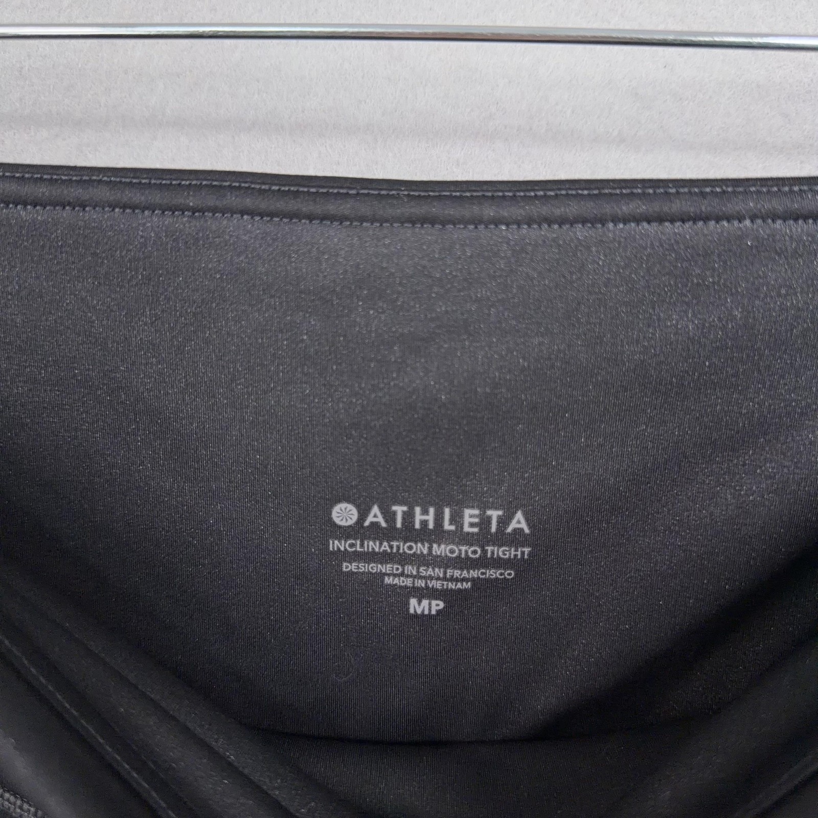 Athleta Pants Womens Medium Petite Black Inclination Moto Tight Leggings Gently worn with minimal signs of wash and wear. Fabric, seams, and moto panels are clean and intact with no stains or holes. Logos and waistband elastic in good condition. Brand: Athleta Style: Inclination Moto Tight leggings with sleek moto panel detailing and ankle length cut. Color: Black Gender: Womens Size on tag: Medium Petite (MP) Materials: Body 73% polyester, 27% polyurethane (per inner tag). Made in Vietnam; designed in San Francisco. Details: High-rise wide waistband, side drop-in pockets at hips, ribbed moto panels on thighs and calves, stretchy performance fabric, pull-on style. Style/Model codes on tag: S/S12070-00, V305922, HO19; RN 54823. 23279 Measurements: - Previous washings may change the sizing written on the tag. - Please refer to the photos above for all measurements. - Please compare our measurements to that of one of your favorite garments. - Please note, item measurements are approximate . All items are bagged and sealed after being photographed, then stored in a smoke free environment to ensure the item is exactly the same as when photographed. All items have been cleaned per eBay standards & policies. I carefully package and ship daily. Feel free to contact me with any questions.