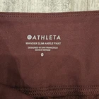 Athleta Wander Slim Ankle Pants Women's Size 0 Side Zip Athleisure Travel. Antique Burgundy These versatile pants feature a sleek slim fit, ankle-length cut, and convenient side zip closure. Designed for both style and functionality, they are perfect for hiking, climbing, or everyday activities. Excellent pre-owned condition. Measurements included in photos. Keywords: slim fit, ankle-length, side zip, athleisure, travel, hiking, climbing, versatile, comfortable, stretchy, breathable, minimalist, casual, activewear, adventure, outdoor, modern, functional, sleek design, performance wear.